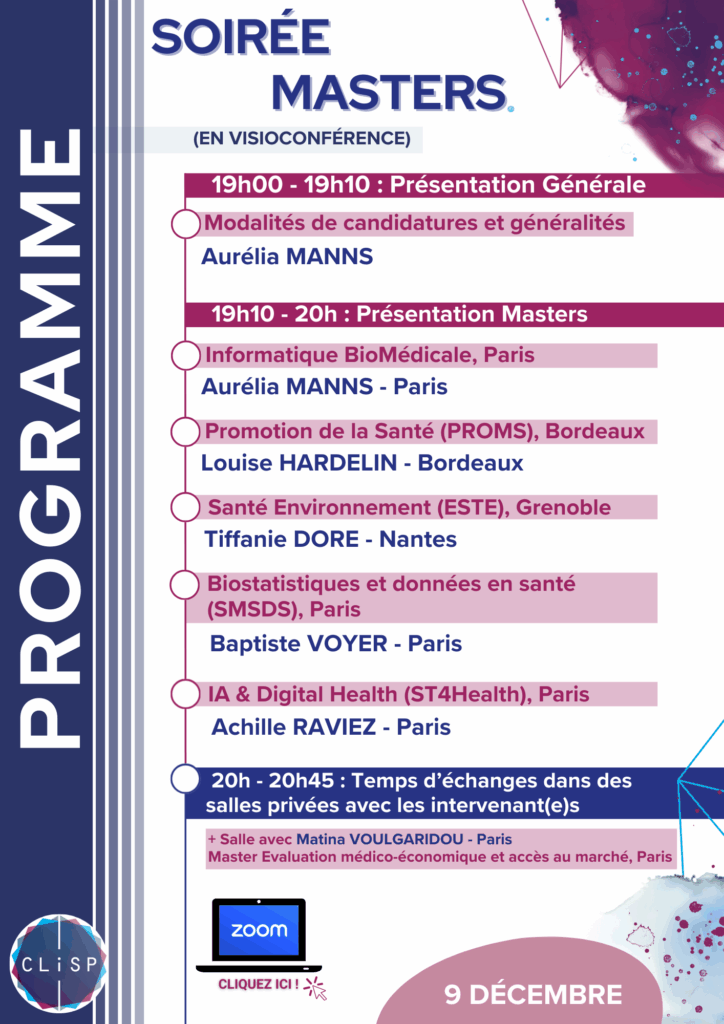 Pour participer à l’évènement, contactez le CLISP pour vous inscrire et obtenir le lien visio pour la soirée!